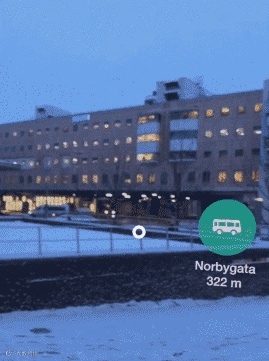 另外,还有像挪威公共交通AR应用Entur,该应用通过AR技术来检测各个公交站点相对于用户的位置,无需将数字地图转换到现实世界,而是直观的提供公交站位置并提供路线指引。