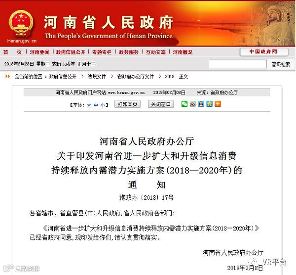 《河南省进一步扩大和升级信息消费持续释放内需潜力实施方案(2018—2020年)》全文如下: