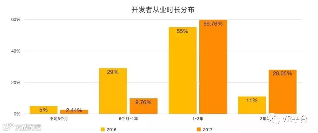 随着行业遇冷,2017年新加入的内容团队数量较2016年有较为明显的下降。而选择继续从事VR内容开发的团队成熟度则随着经验的累积而有了大幅度提高,大量有经验的团队成为了VR内容开发的中流砥柱。
