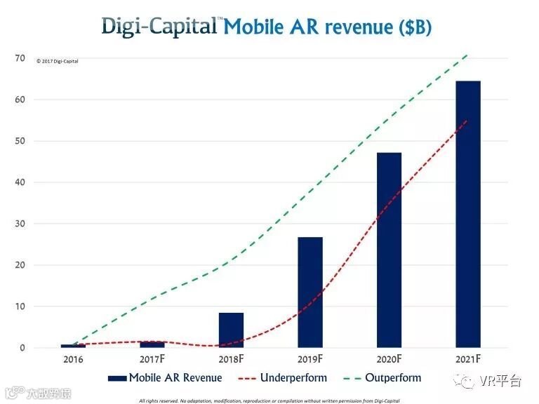 据推测到2021年,移动AR将成为VR/AR市场的主要驱动力,而其规模也将达到600亿美元。