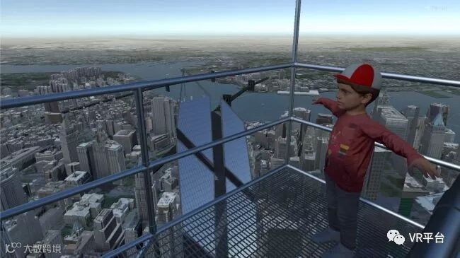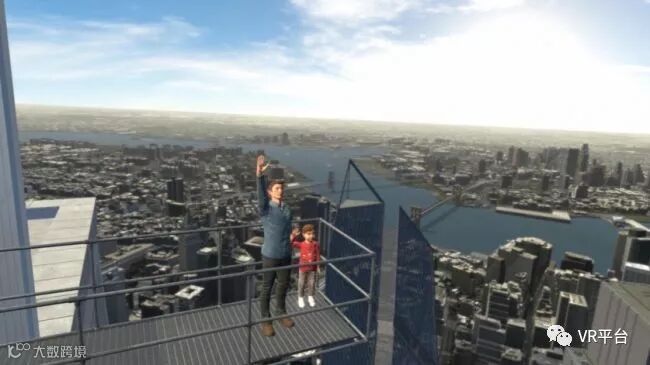 “我就是孩童时的你,我们要去一个有趣的地方。”在体验开始后,我的儿童化身对我说。当电梯门打开后,整个曼哈顿全景就在我脚下的几百英尺中。对于一个恐高症患者来说,这样的场景会令他们感到晕眩,而往往第一步是很难迈出的。“快看那艘船!”虚拟儿童说,当我注视远方的目标时,注意力就被分散了;在体验进行到一半时,一架直升机飞过,还通过喇叭要求我们挥手并拍照……最终,我还是跟着他走到了最后,“我现在得走了,当你身处高处并感到害怕时,就想想我”孩子说罢边走下天台。