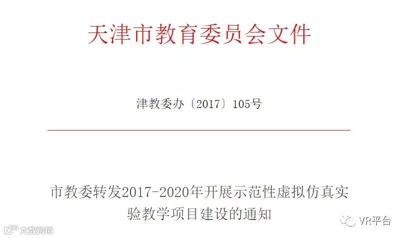 VR网(微信公众号:VR平台)编辑得知,近日,天津市教委转发《教育部办公厅关于2017-2020年开展示范性虚拟仿真实验教学项目建设的通知》文件,并就相关事项对各普通本科高等学校做出如下通知: