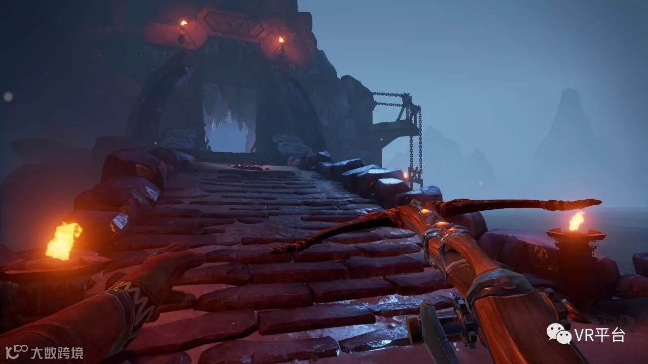 作为“最佳交互奖”的得主,自然少不了与游戏内场景进行丰富的花式交互。在前文中VR网小编说道,地下城布景细节非常丰富,同时充斥着各种机关等待玩家手动开启,例如在开始的游戏教程中,玩家需要通过砍断绳索、击破石门或是射击沙袋穿越木桥等。