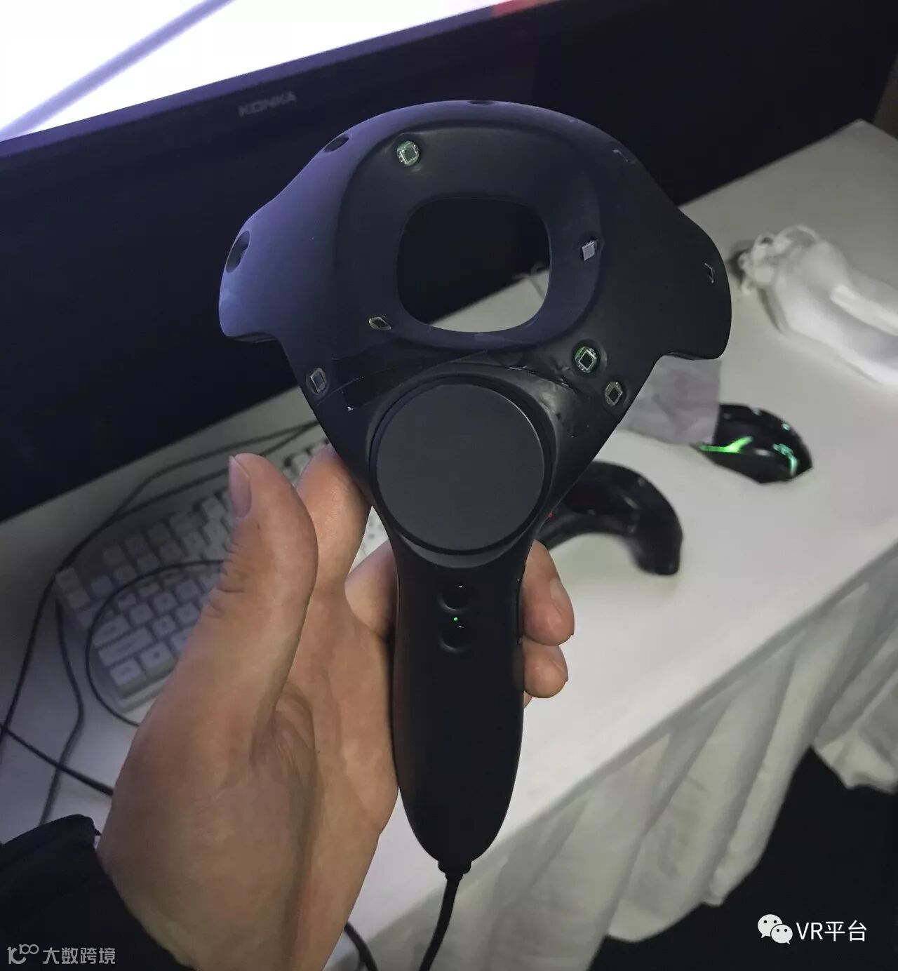 与HTC Vive类似,小派8K也使用了outside-in的定位方式,现场展示的产品使用了lighthouse激光定位,定位基站比Vive的基站要稍大一点。上手体验了两把,在定位精度上没有感觉到差异。而且手柄的键位和操作方式与Vive手柄基本一致,这样也能够降低内容适配上的阻力。