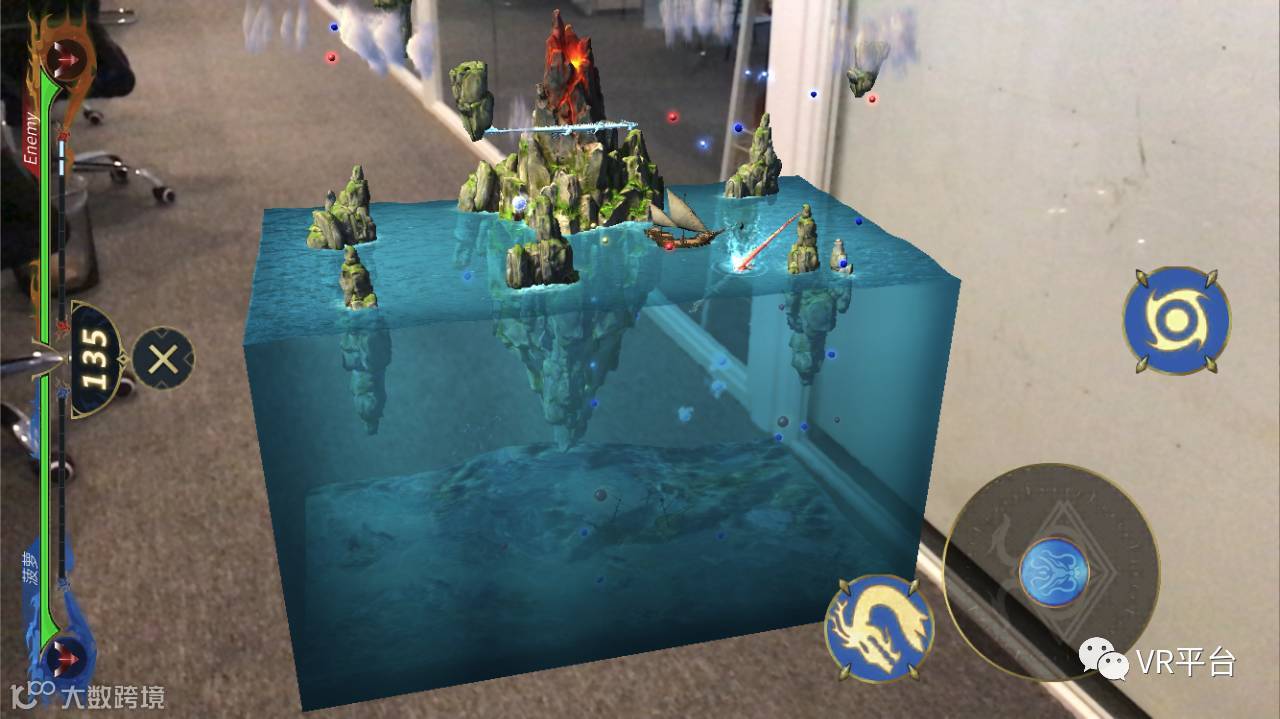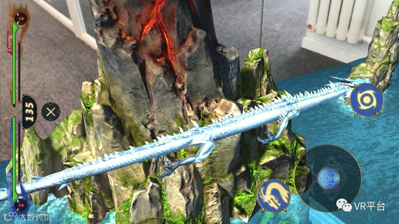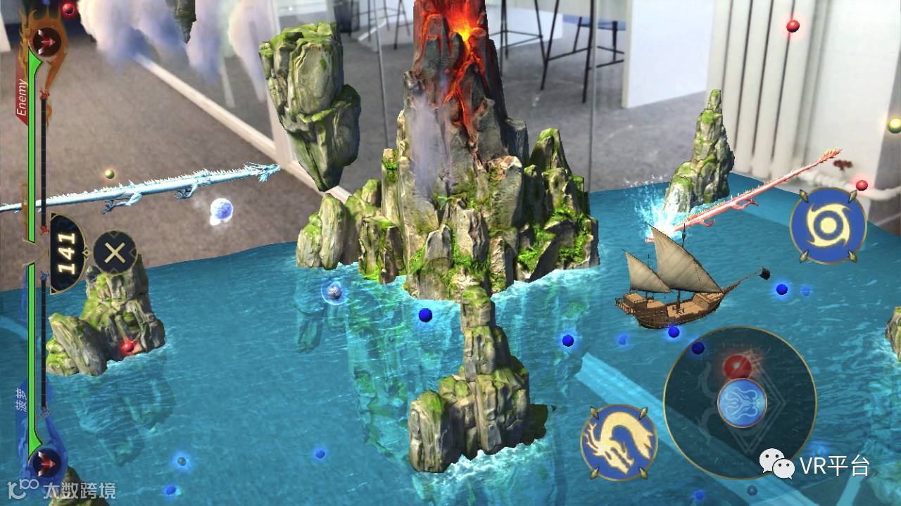 在游戏说明中,也用了很大篇幅来介绍画质上下的功夫。比如使用metal技术,使得龙的网格更加细腻,能够清晰地看到龙的细节,让龙魂(龙魂是什么我们下文再说)能真实的呈现在现实空间中,控制龙魂舞动起来也更加灵动。海水效果也结合metal技术,呈现了逼真的出入海水的模糊效果和水花效果,给玩家身临其境的感觉。为了制作逼真的海面和天空云朵,来和现实环境匹配,开发团队尝试了17种水面方案来进行体验,选择了其中效果表现最好的海面进行制作。为了追求水面效果和性能的融合的平衡,开发组花了大量的时间对水面效果进行优化,提升了游戏的运行效率。当然VR网编辑经过实际测试也可以看到,的确如此,游戏画质表现的确很不错。