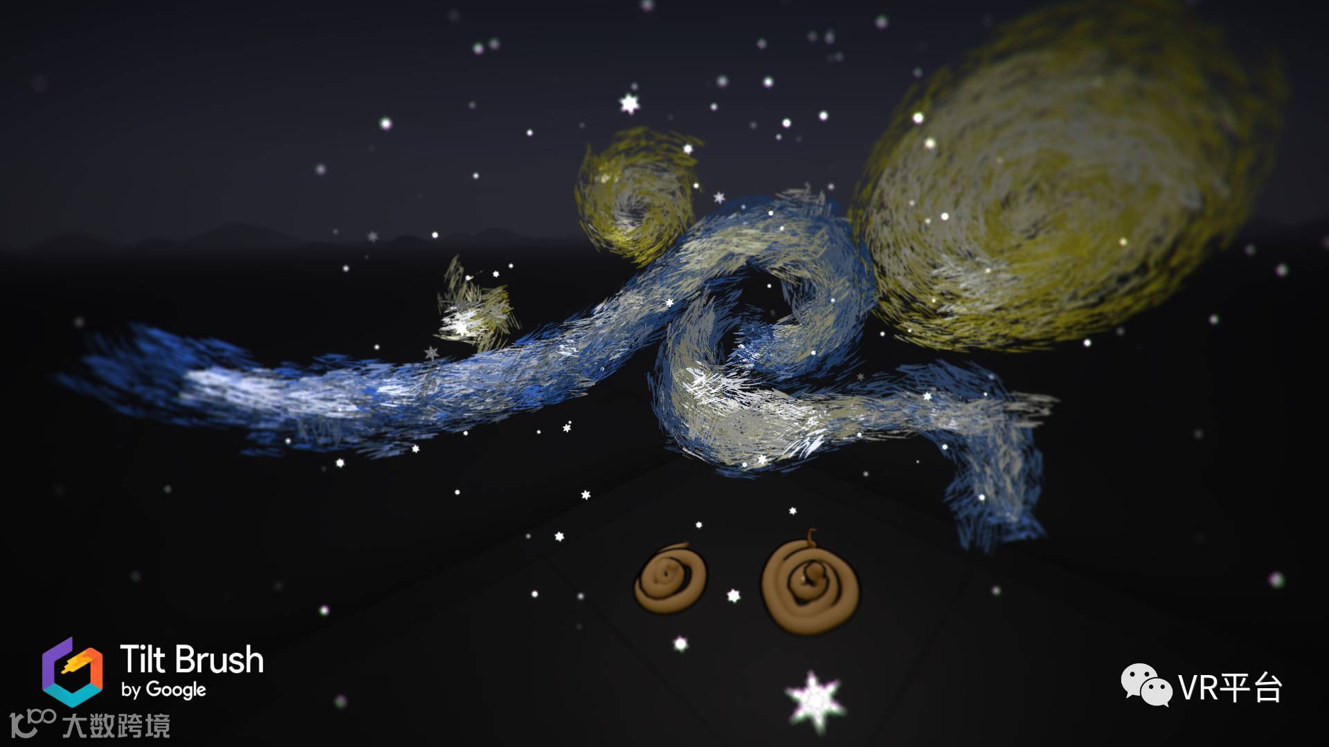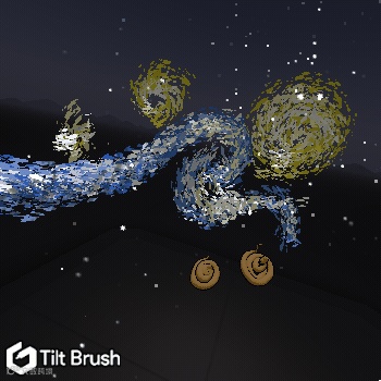 二、打造VR艺术品。早在2016年Oculus Rift和HTC Vive平台上就都上线了关于VR作画的应用,《Quill》和《Tilt Brush》,为大触打造惊艳作品提供了利器。眼下,就有大神用《Tilt Brush》在VR中打造了梵高的《星空》。