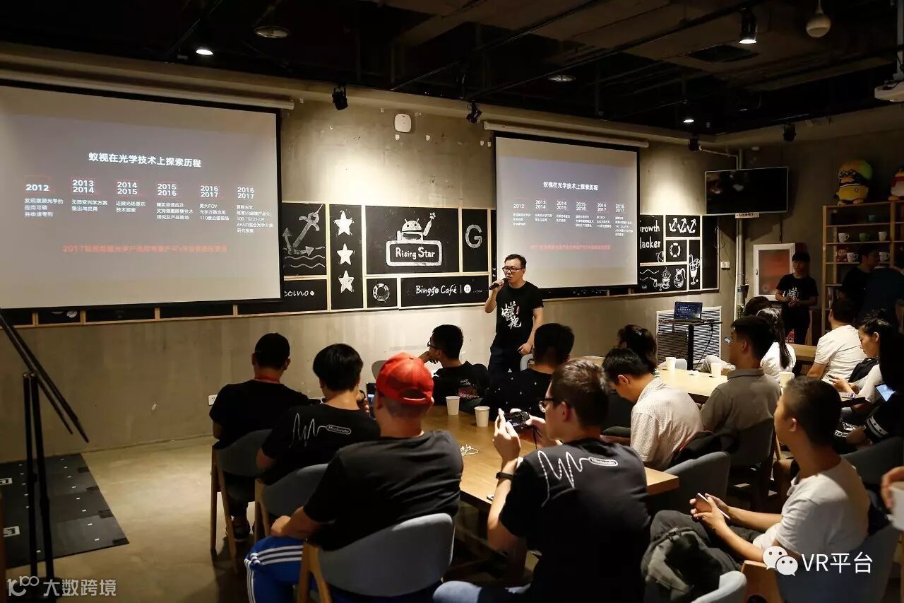 品鉴会一开始,蚁视CEO覃政向大家介绍了蚁视在VR领域的主要技术探索及目前的研发状况。在光学技术领域,从2012年覃政申请复眼光学专利技术至今,蚁视先后在无畸变光学方案、近眼光场显示技术、瞳距自适应及支持佩戴眼镜等领域探索尝试和产品落地。在今年,蚁视又将更大FOV光学方案应用到了2C和2S两款产品上,这两款产品的视场角均为近圆的110度。覃政还向大家透露,其自主研发的复眼光学超薄VR头显即将产品化,有望在今年年底与公众见面。而且,蚁视已开始了100°以上FOV在AR/VR混合光学方案上的研究探索。