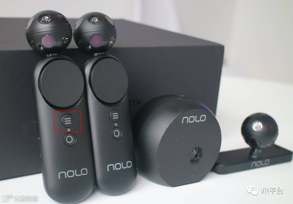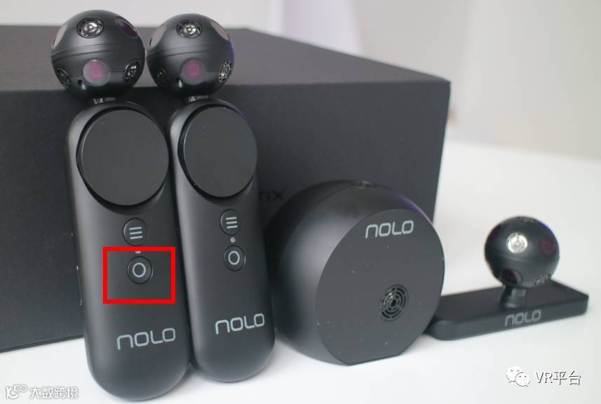 · NOLO为单基站定位方案,官方称定位范围为100°FOV,5.3M。为满足360°游戏的需要,NOLO设有一键转身功能,就是下图中的这个按钮,双击任意一个手柄的转身