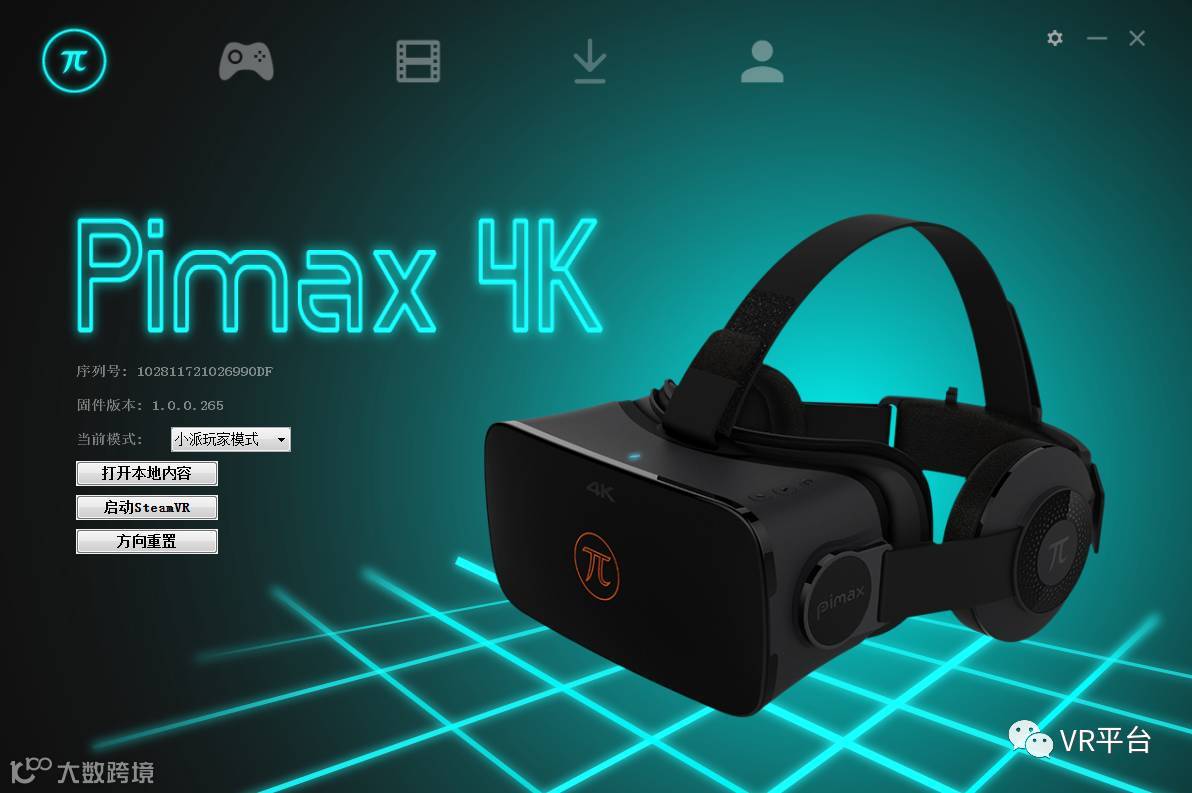 该连的线连接好,开始进入设置环节。众所周知Steam平台上有非常多的游戏,NOLO的主打也是让用户使用VR眼镜可以玩Steam平台的游戏,所以这里我们需要下载以下两个软件:Pi Play(小派玩家)软件;SteamVR软件。要说明的是,由于小派和NOLO亲密无间的合作关系,适配做得比较到位,最新版本的Pi Play软件集成了NOLO驱动,只需要下载Pi Play即可,不用再同时安装NOLO驱动,非常方便。