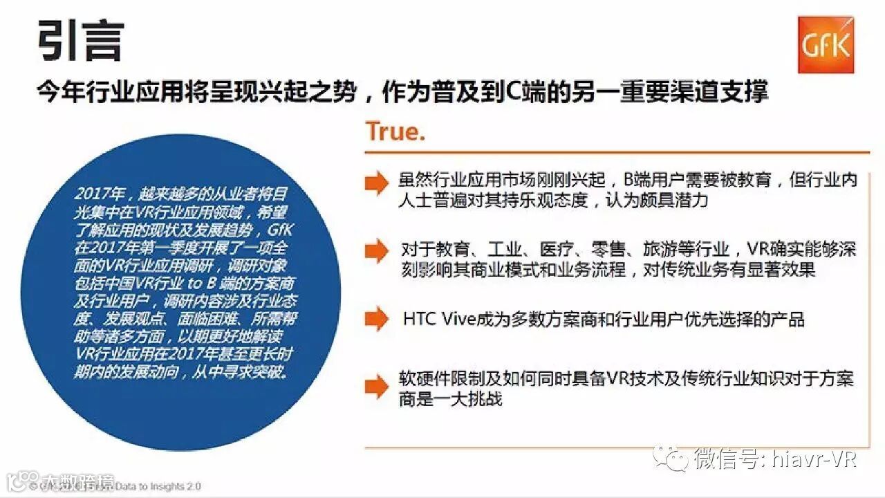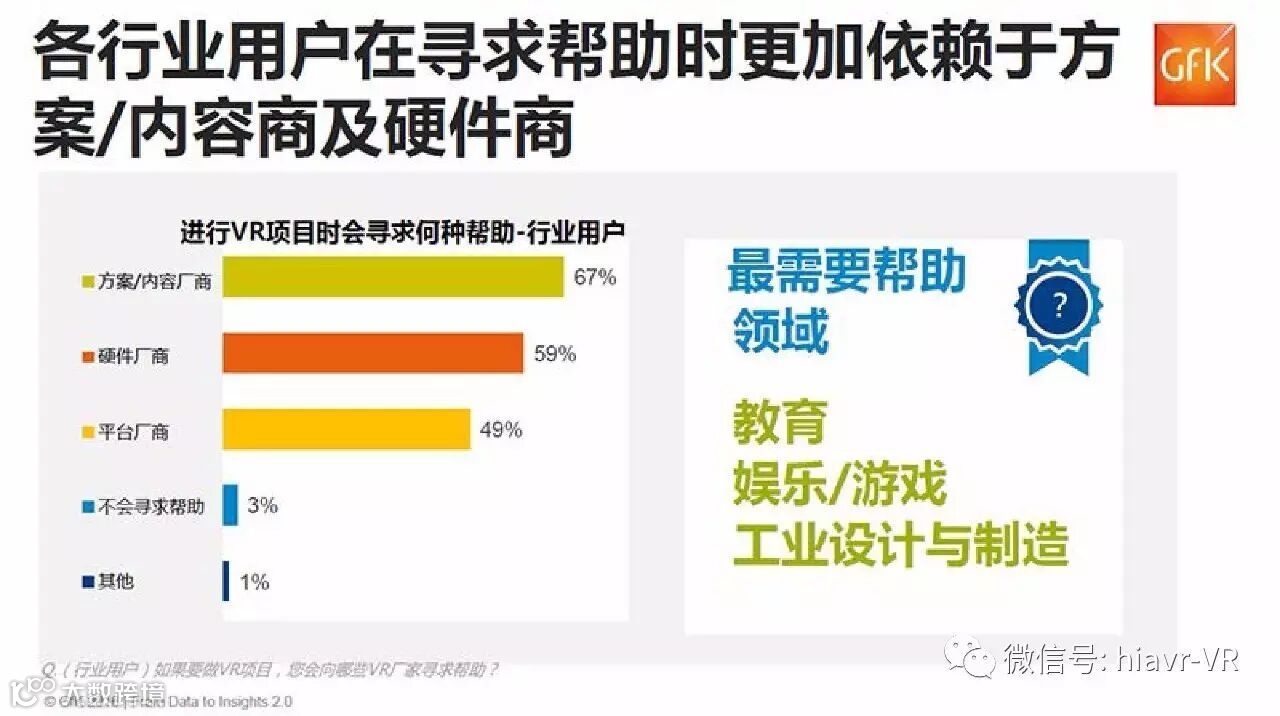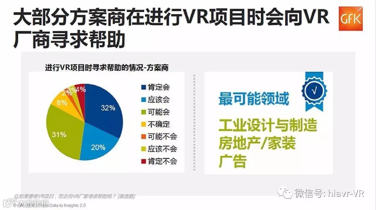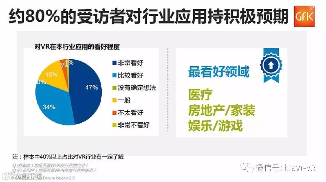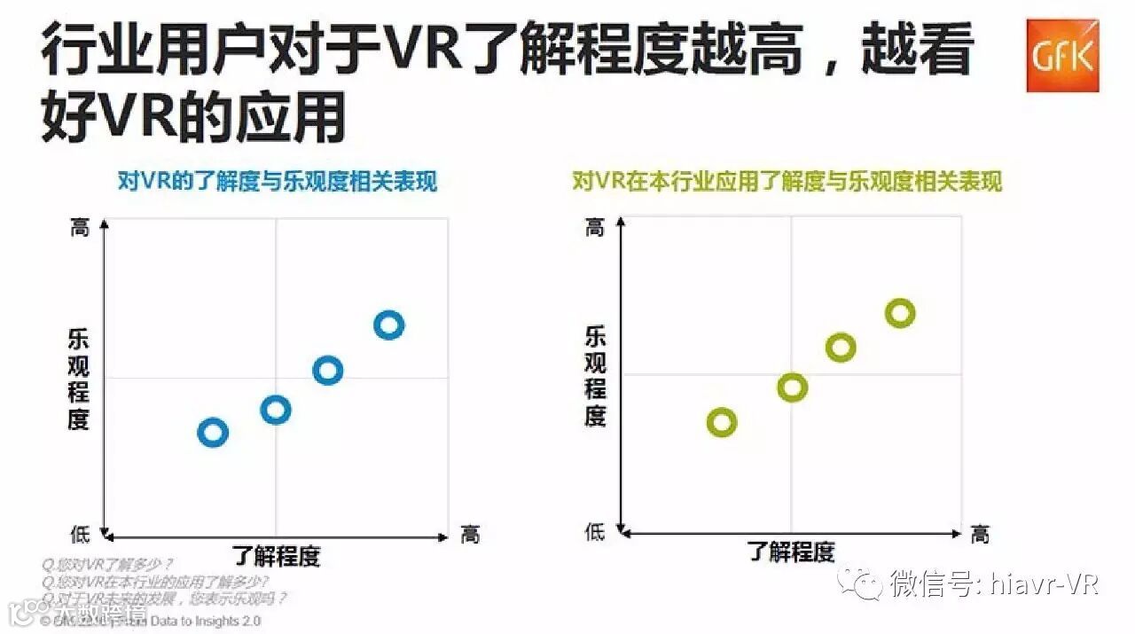 一些行业用户在深入了解的VR过程中,越来越看好VR行业应用;而一些不看好VR应用的行业用户认为自己根本不知道有什么针对本行业的VR内容。从根本上讲,这些不看好VR应用的行业用户就是对VR行业所知甚少,渠道不通,信息接收少。所以对本行业的VR内容不了解,不看好VR应用。