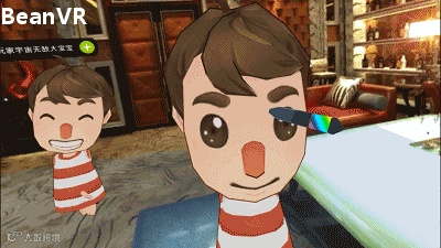 为了丰富互动的形式,还可以在VR社交应用中加入各种自定义的道具,比如给好友画胡子,通过人脸扫描CV技术,可以把自己真实的体态还原到VR社交场景里面去。在VR社交中,你不仅能选择一个虚拟的人物,更多是对自己真实的还原。而且你可以基于自己真实的形象,比如说在保留自己特征的同时,去捏成另外一个人。比如说你觉得自己发型不满意,对自己的身材体态不满意,可以在保留自己的五官特征的同时,把自己脸捏的更尖,把自己变得更帅,比如一块腹肌可以改成八块腹肌,这样可以吸引到更多的妹子甚至是基佬的注意力。