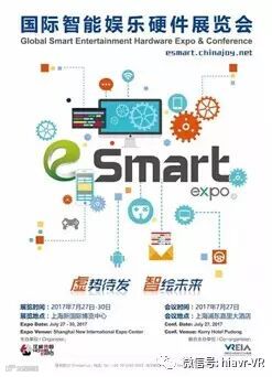 2017年7月27日,由ChinaJoy主办方汉威信恒与中国VR/AR娱乐产业联盟(由汉威文化、微软、索尼、三星、NVIDIA、EPIC、盛大集团、暴风魔镜、乐视虚拟现实、米粒影业等十余家国际知名VR\AR娱乐企业共同发起组建)联合主办的第二届国际智能娱乐硬件展览会(以下简称eSmart)将在上海新国际博览中心拉开帷幕。