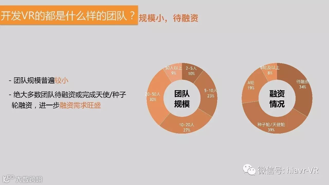 中国VR开发者团队:多有专业游戏/影视背景;游戏开发团队为主;团队规模较小,融资需求旺盛;盈利团队极少,现阶段主要盈利点为B端订制;未来有明确的发行与PR需求
