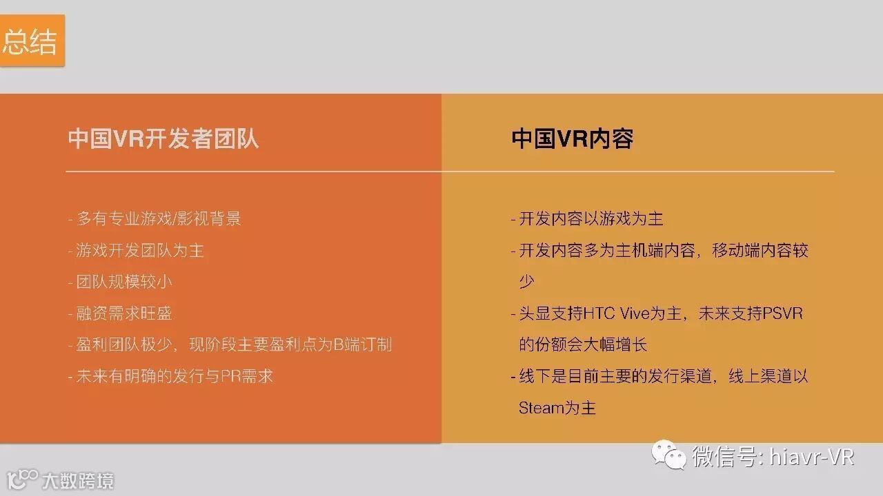 中国VR内容:开发内容以游戏为主;开发内容多为主机端内容,移动端内容较少;头显支持HTC Vive为主,未来支持PSVR的份额会大幅增长;线下是目前主要的发行渠道,线上渠道以Steam为主