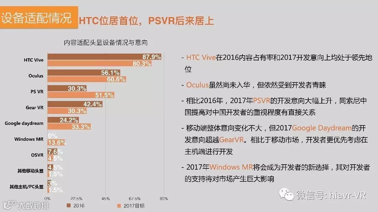 -HTC Vive在2016内容占有率和2017开发意向上均处于领先地位