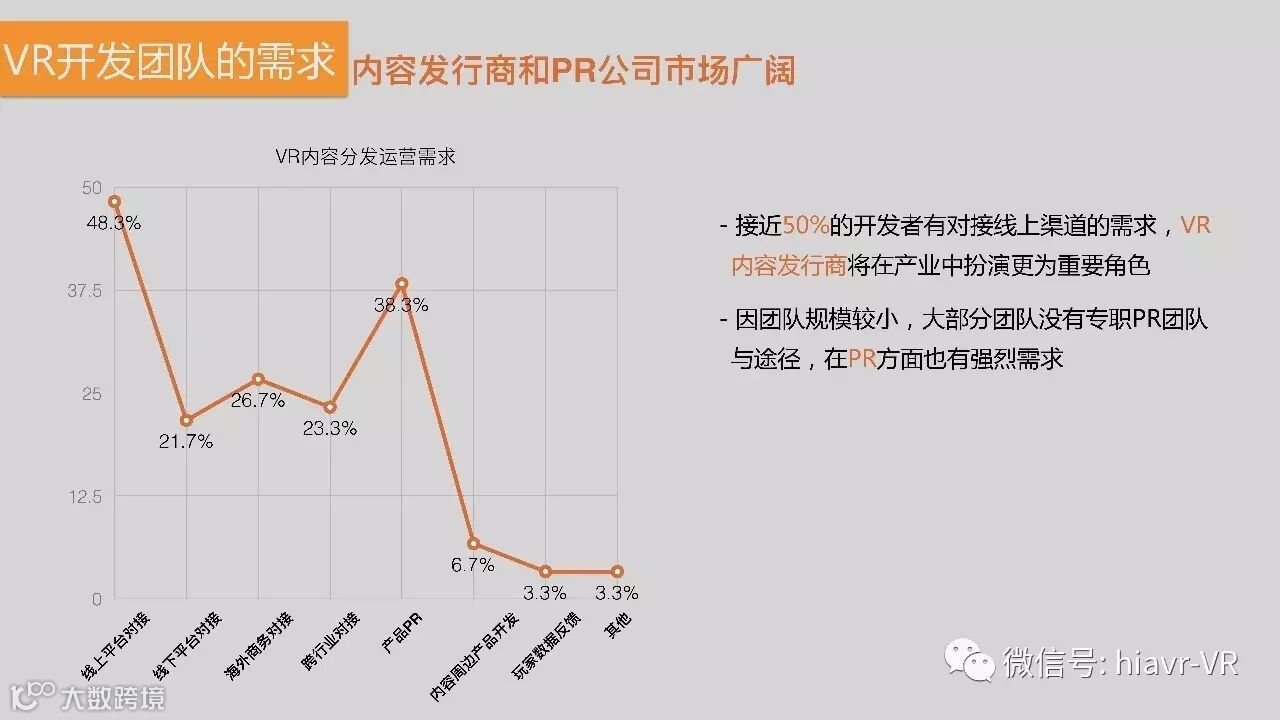 -接近50%的开发者有对接线上渠道的需求,VR内容发行商将在产业中扮演更为重要角色