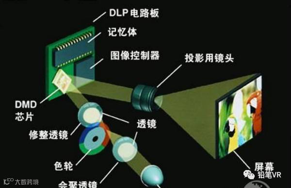 DLP比这个稍微复杂一点,因为还有个色轮把白光分成三原色分别投射了,也就多了这一步而已。