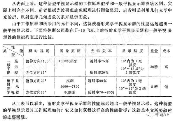 衍射光学平显通过CRT成象。衍射平显中的一个光学元件使用了全息加工技术,组合玻璃不象准直式那样是平板镀膜玻璃