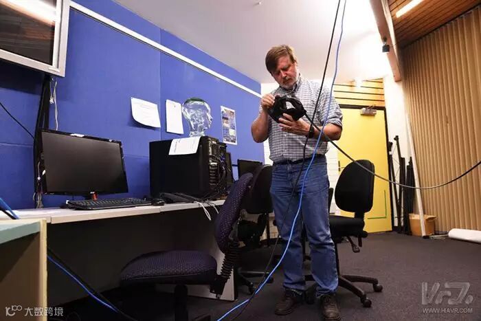 Bruce Thomas教授正在南澳大利亚大学的VR实验室工作