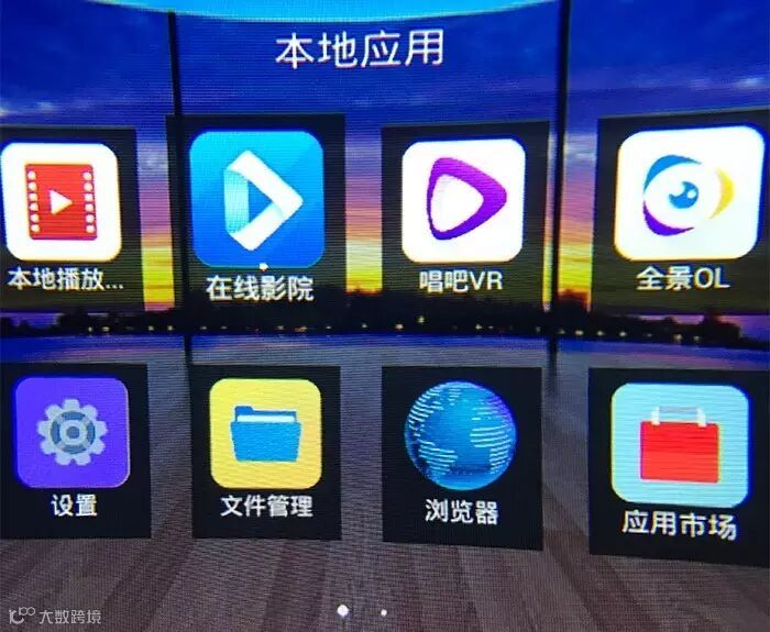 本地、在线影院、唱吧VR、全景OL、图片、工具这六个图标排列在面前,通过注视点进行瞄准之后,可以通过按压头显下方的摇杆来进入想要打开的功能。当然了,也可以搭配遥控器。