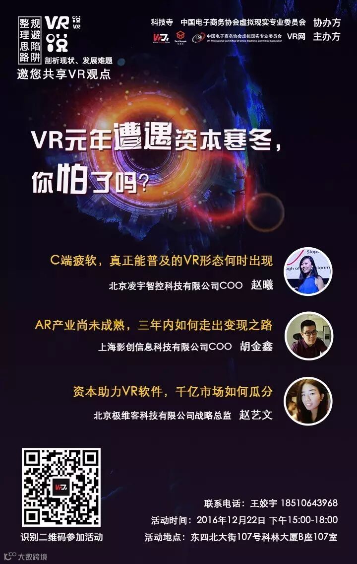 导读:2016年最后一场VR沙龙聚会顶尖盛会,尖端思想等你来说!