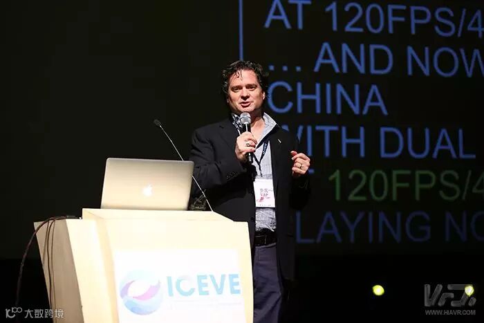 ICEVE2016大会以“未来影像·影响未来”为主题,聚焦于高质量影像、先进影像制作流程、虚拟现实影像制作和未来影像技术四个主要领域,并在每一个领域中都邀请到了国内外的顶级专家。在上午进行的高质量影像论坛环节中,国际先进影像协会会长,国际虚拟现实协会会长Jim Chabin做了关于3D、虚拟现实、高动态和高帧率发展现状的主题演讲。在演讲中他提到:3D电影已经成为全球票房市场的主流产品,同时高动态高帧率电影正在成为电影领域的新的趋势,而在更远一些的未来,VR技术才是会为影像产业带来革命式发展的新兴技术。各种调查报道显示VR技术和相关产品备受消费者的期待,但同时VR产业目前也面临着缺乏内容、无法创造盈利以及团队规模过小等挑战,需要也值得在座的年轻一代们为之付出努力。