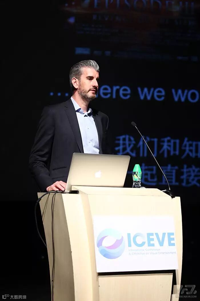 来自全球最大的可视化预览公司The Third Floor的CEO:Chris Edwards则从影像制作流程的角度,描绘了一幅将虚拟(可视化预览)步入真实(最终产品体验)的精彩画卷。通过对上百个电影、游戏、主题公园项目提供可视化预演与智能拍摄服务,Chris走过了一条从特效,到预演,再到VR的产业发展之路。他认为在影像制作流程中,以VR为代表的新技术正在创造一种全新的影视语言,而打通电影的被动叙事与游戏的互动性中间的“半交互叙事体验”则是这种语言的终极目标。