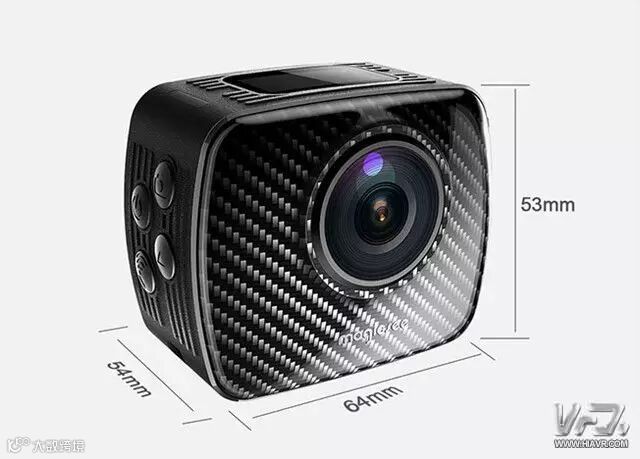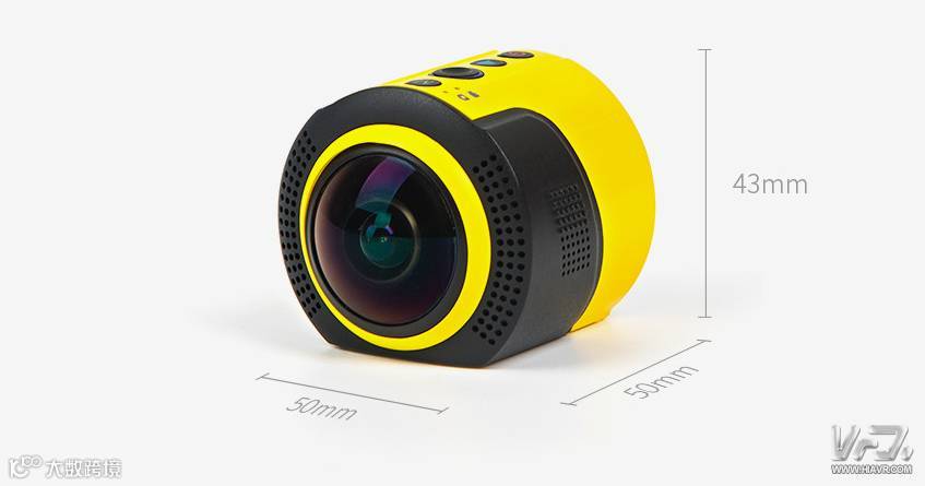 外部尺寸仅为5X4.3X5CM,重量也只有77g,非常便携,顶部的大眼睛是一个FOV236°的全景定焦镜头.