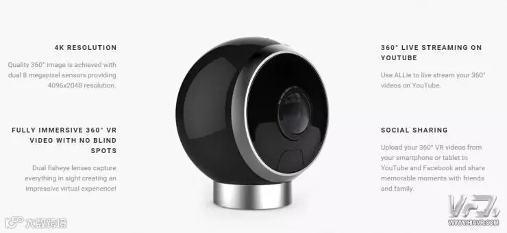 ALLie专为日常使用所设计,支持高达4K分辨率的视频录制与直播,仅需将ALLie与手机相连,并打开ALLie应用即可开始全景直播。