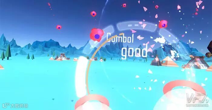首先从游戏界面上来说,《音波猎手》采用了清新的Low Poly画风。可能有很多小伙伴对这一名词不是很了解。但是有一款手游你一定不陌生,那就是《纪念碑谷》。这款游戏就是Low Poly画风的作品。游戏中用低多边形呈现出建筑的超现实感,以及清新的画面色彩。作为一款VR游戏,《音波猎手》的Low Poly画面不仅仅局限于电脑屏幕,而是让你置身于如童话般的世界当中。这种清新的风格更容易让玩家卸下压力放松自己,看一片蓝蓝的风景,赏一目青山郁郁,奏一曲天籁之音。