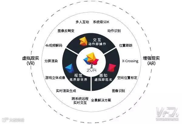 ZVR是国内领先的VR底层技术与设备提供商,专注于大范围可自由行走的多人交互式虚拟现实解决方案——临境空间。仓库级别的VR交互方案,目前国内只有来自ZVR的“临境空间”,国外则只有美国的The Void和澳大利亚的Zero Latency。同时,ZVR还推出了自主开发的第二代无线PC VR头显MGlass W2,为地产、教育、文博艺术、游戏、主题公园等商业性虚拟现实应用,提供无线缆束缚的卓越体验。