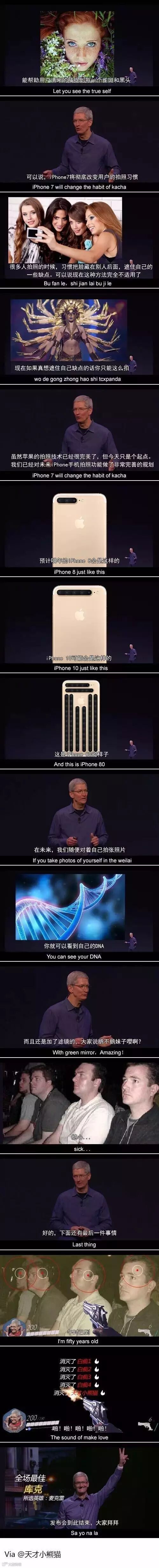 这么多新功能,可是偏偏没有我们期待的虚拟现实,喂啊君表示很失望,并在别人讨论各种功能与性能时,只想和大家分享唯一比苹果VR更有趣的内容 —— 段子手们创造的苹果新段子!