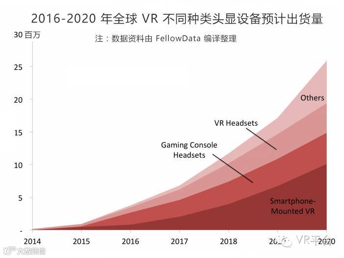 据此预测,在 2015 年至 2020 年间,VR 头显设备出货量的年复合增长率将达到惊人的 99%。