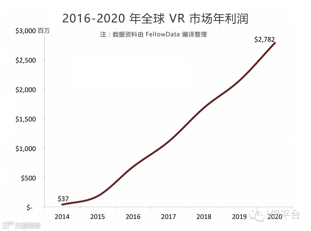 2016 年 VR 硬件市场规模估计为 3700 万美元,到 2020 年预计将达到 28 亿美元。