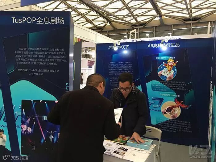 另外,启迪数字天下自主研发的AR产品也出现在了展位上。《闹天宫》AR卡通绘本、《山海经》AR立体绘本等产品引发了参展观众们的强烈兴趣,观众们只需使用手机应用程序扫描绘本和卡片便能体验到增强现实的奇妙,这一技术也被应用于很多领域,比如最近大热的手机游戏《口袋妖怪GO》便是使用了类似的技术。