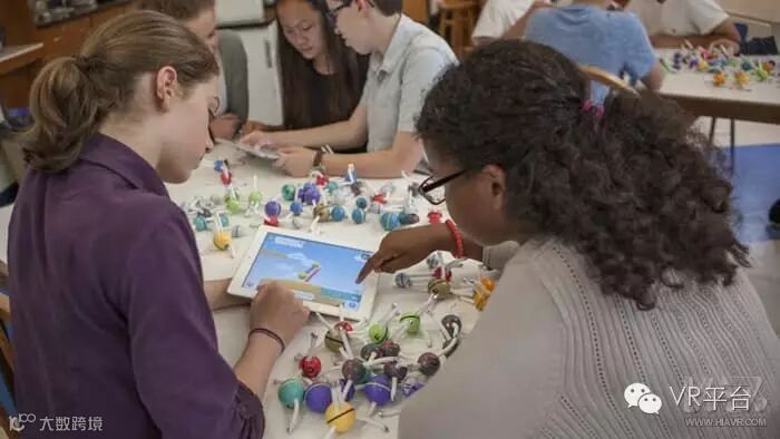 而AR技术,在教育行业的应用更为广泛,比如VR网最近报道过的Indiegogo众筹项目“Happy Atom”。这个项目是通过平板电脑扫描并识别“Happy Atom”产品,然后在app中拆解并显示该产品所代表的分子的信息。Happy Atom帮助学生制作更复杂的分子结构模型,深入观察化学过程。对于学生掌握分子结构而言有着重大意义。