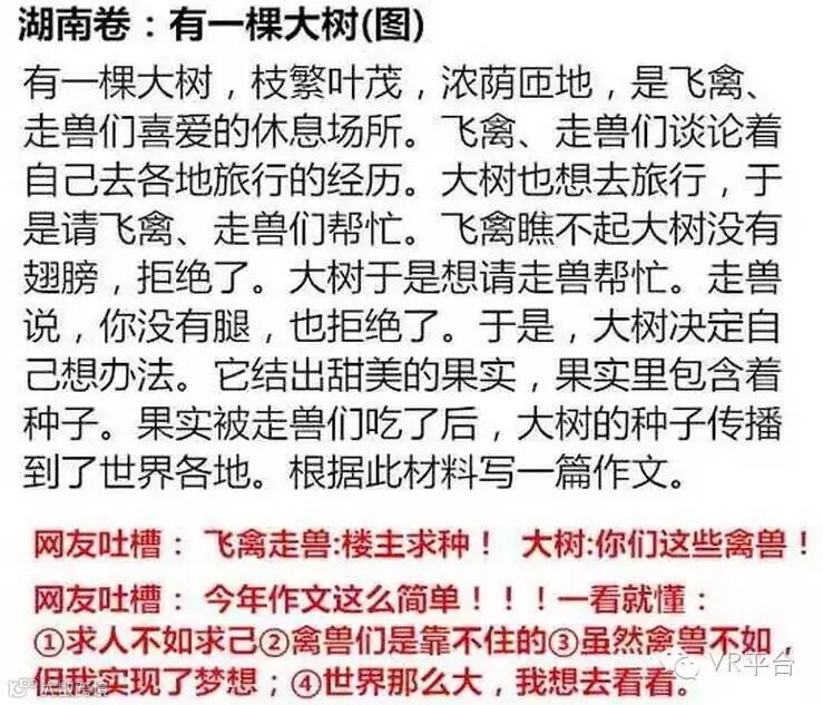 比如说,高考的作文题。
