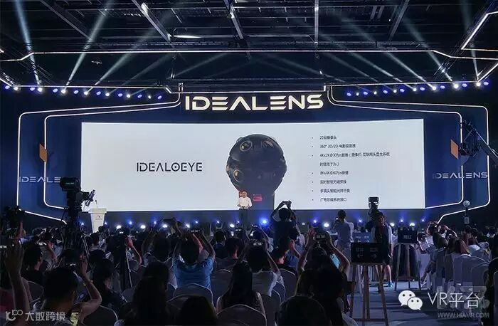 除了Idealens K2头显之外,Idealens还公布了名为Idealoeye的360度相机,这款相机包含20个摄像头,可谓是怪兽级的专业摄影设备,该相机主要参数如下:20目摄像头、360度3D/2D电影级画质、4K*2K分辨率的30fps直播、8K*4K分辨率的60fps直播、实时智能无缝拼接、多镜头智能光照平衡、广电非编系统接口。下图为发布会现场的工程机: