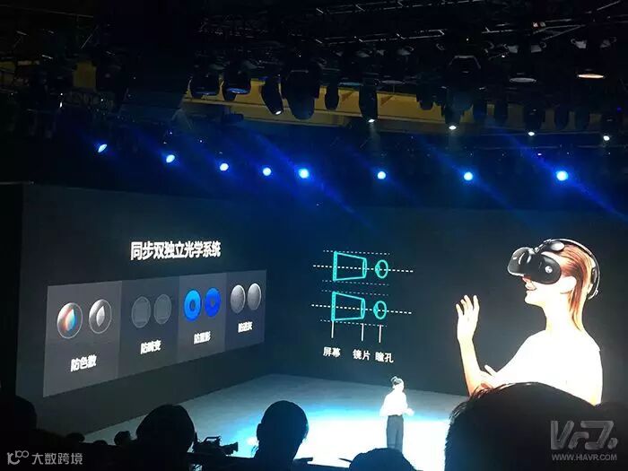 她介绍称,酷开VR一体机使用了高通骁龙820芯片,内置4GB+64GB的存储组合,支持高通快充技术3.0。采用同步双独立光学系统,标配USB TYPE-C接口。使用2.89寸的夏普屏幕,刷新率达120Hz。运动轨迹预测技术、多重换面缓冲技术、画面失真矫正算法等,避免使用时产生眩晕。另外,设备还内置全景声音效系统。