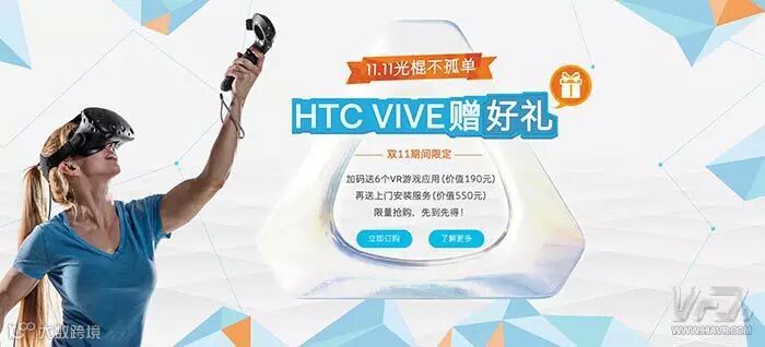 HTC Vive本次推出的名为“11.11光棍不孤单 HTC Vive赠好礼”活动持续20天的时间,将为玩家朋友们赠送免费上门安装服务与6款Viveport游戏,好吧,又是为了推广Viveport。