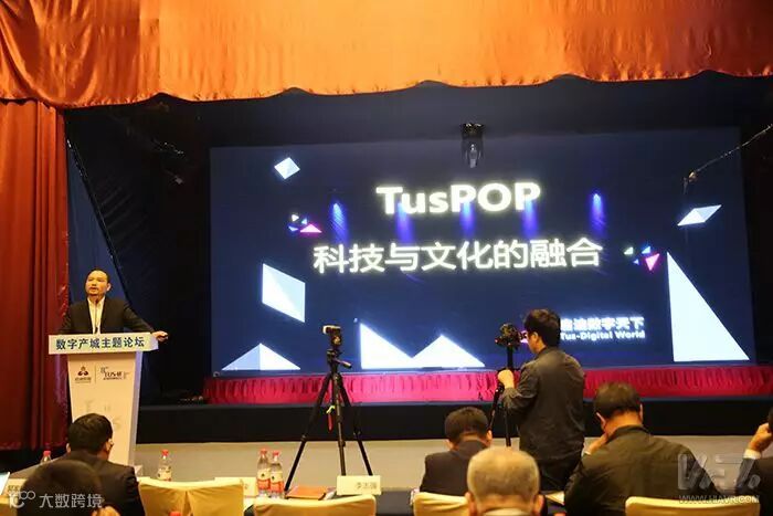 在全息表演结束之后,启迪数字天下副总裁何义民发表了题为《TusPOP 科技与文化的融合》的主题演讲,向与会嘉宾正式介绍了启迪数字天下的TusPOP全息虚拟剧场解决方案。作为一种虚拟特效影像与全息投影及图像采集智能互动技术结合而诞生的新型演艺形式,这种全息虚拟剧场可以通过主演绎舞台及折幕互动,形成270度包围式视觉冲击,营造独特的视觉体验。通过后期图像处理系统及视觉设计,加入真实舞台无法实现的特效场景,让观众看到的一场完整的现场表演。