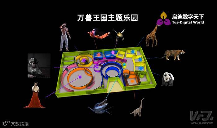 另一个来自启迪数字天下的参展产品是“万兽王国”VR乐园解决方案,启迪数字天下的工作人员介绍,这可以说是一个“没有动物的动物园”。它是以动物世界为主题的多媒体虚拟体验场馆,涵盖了一个从史前到现代、从神话到科幻的动物世界,通过多媒体虚拟互动体验营造出集合电影、游戏、旅游等综合性娱乐方式的主题公园,同时融合娱乐性与教育性于一体,普及珍爱动物、保护环境的理念。