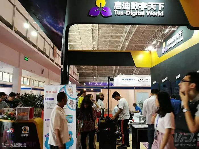 原来这是启迪数字天下(北京)科技文化有限公司的展位,该公司也是本次展会的协办单位之一,据启迪数字天下的工作人员介绍,该公司隶属于清华启迪控股集团,是清华启迪控股在虚拟现实行业领域布局的重要子公司。本次参展的主要产品有"特来视"AR平台、"万兽王国"VR乐园和TusPOP全息虚拟剧场。