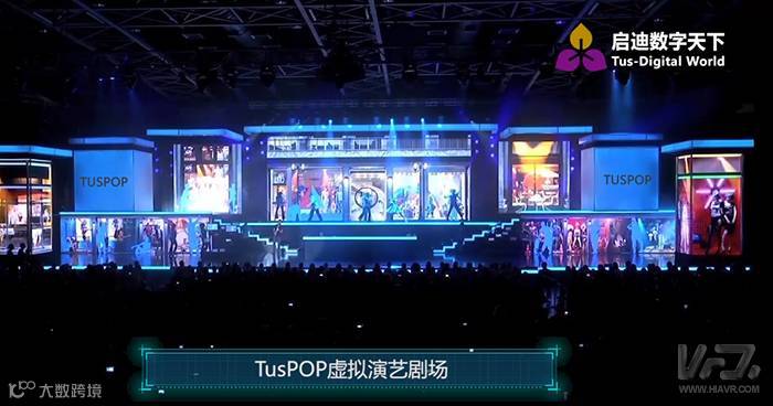 而TusPOP全息虚拟剧场,是一种虚拟特效影像与全息投影及图像采集智能互动技术结合而诞生的新型演艺形式,通过主演绎舞台及折幕互动,形成270度包围式视觉冲击,营造独特的视觉体验。通过后期图像处理系统及视觉设计,加入真实舞台无法实现的特效场景,让观众看到的是一场完整的现场表演。