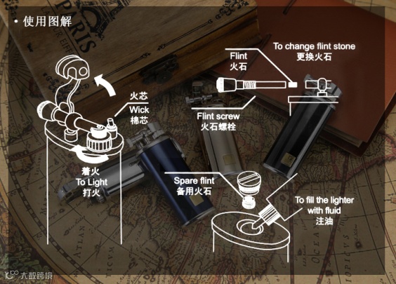 独特的顶针(专利),手工组装,底部螺丝出厂自带备用火石,价格实惠,经久耐用!