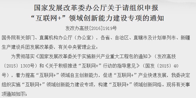 关注“VR平台”微信公众账号,后台回复“发改委”,获取《关于请组织申报“互联网+”领域创新能力建设专项的通知》原文。