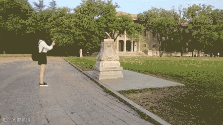 “日晷底座用汉白玉请工匠在校内雕作而成,四面刻文,二中二洋。南面:’庚申级立’,北面英文为Class 1920。一侧中文’行胜于言’,另一侧为’行胜于言’的拉丁译文’Facta Non Verba’。中文是由庚申级同学邹宗彦之兄邹宗善所书(邹宗善为南开大学生,曾与周恩来总理同学),外文由华凤翔学长书写。日晷,对于清华大学来说,具有十分重要的意义。”黄博渊说。