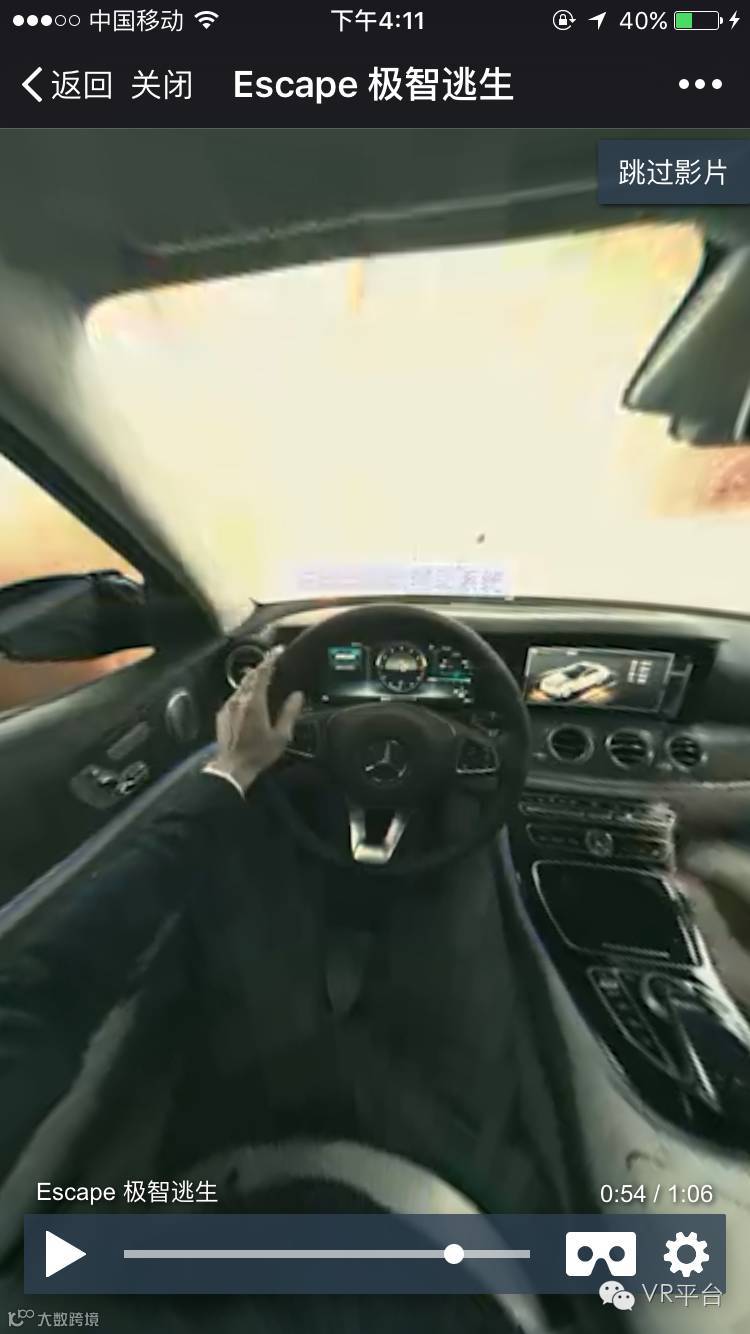 还没体验过奔驰最新VR视频的朋友可在“VR平台”微信后台回复“奔驰”进行观看。