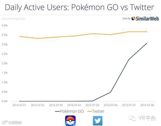 (日活跃用户量:Pokémon GO VS Twitter)
