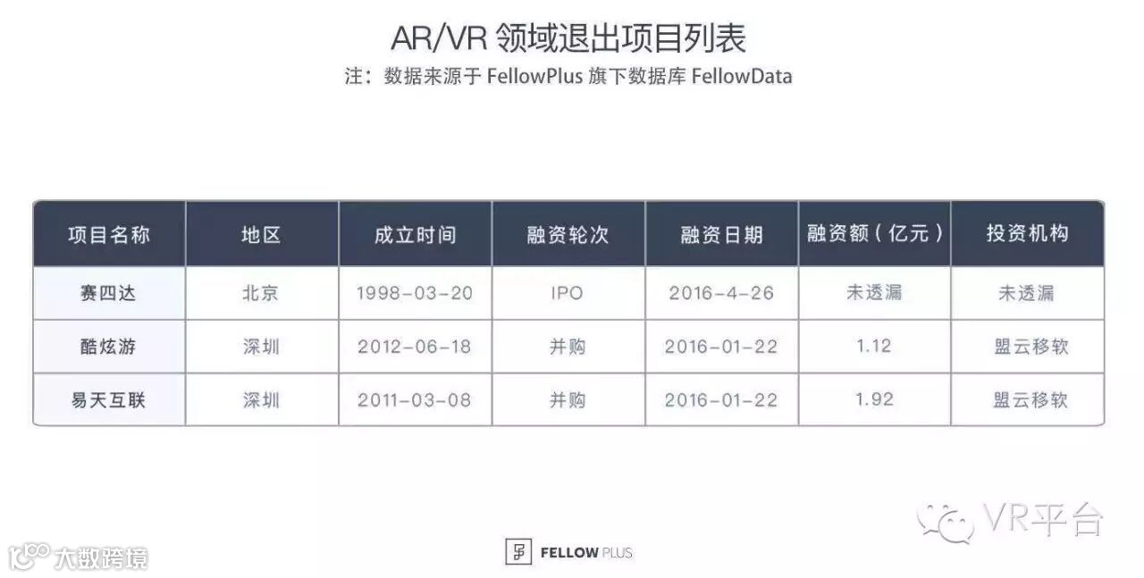 资本在个别项目已经完成了退出,但这些项目目前对行业的影响力仍有限。目前国内一家叫做赛四达的企业已完成 IPO,它成立于 1998 年,公司业务涉及虚拟制造、训练模拟器、战场综合环境 C4ISR 业务、电子系统仿真和民用科技场馆的仿真业务。在专业领域技术应用方面相对发展的比较成熟,但是离民用消费市场较远,并没有受到大众的关注。